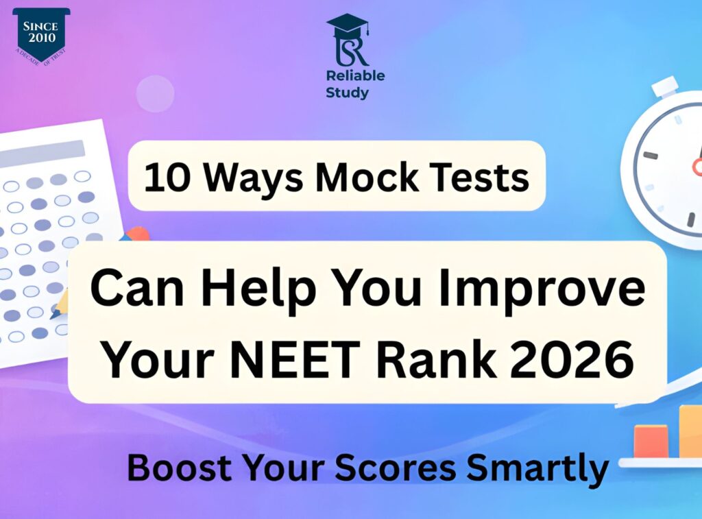 When mock tests are taken consistently and analysed properly, they transform theoretical learning into exam-ready performance. At Reliable Study, well-structured mock tests are designed to support students at every stage of preparation, helping them stay focused, reduce exam stress, and approach the NEET exam with clarity and confidence. With the right practice strategy and disciplined effort, achieving a better NEET rank becomes a realistic and attainable goal.